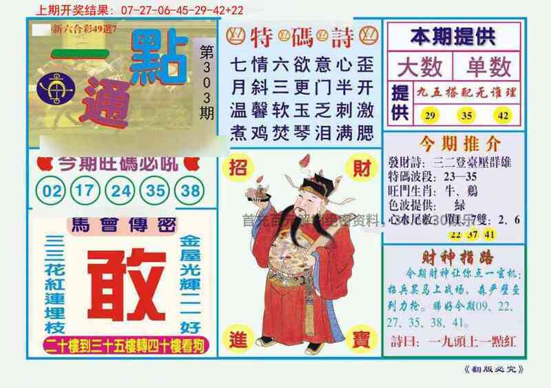 303期:男女两肖╠女肖+鼠牛╣开:兔15准
