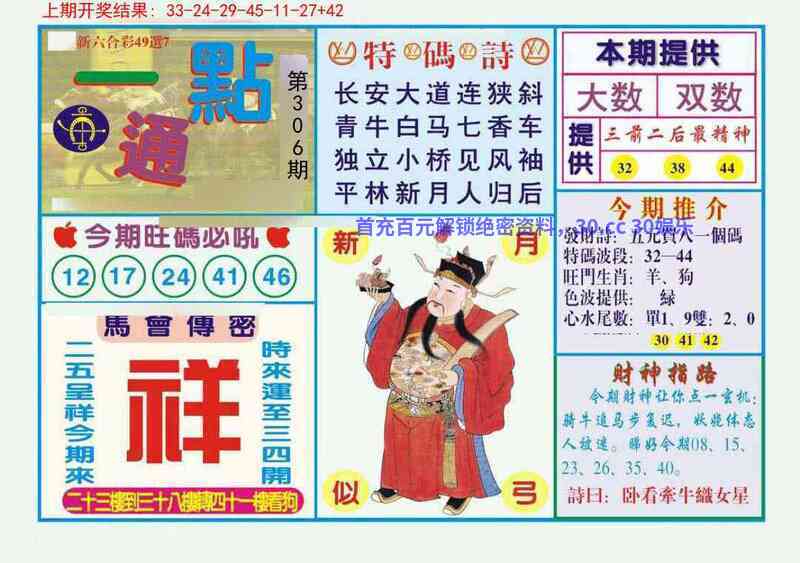 306期:男女两肖╠男肖+猪鸡╣开:牛17准